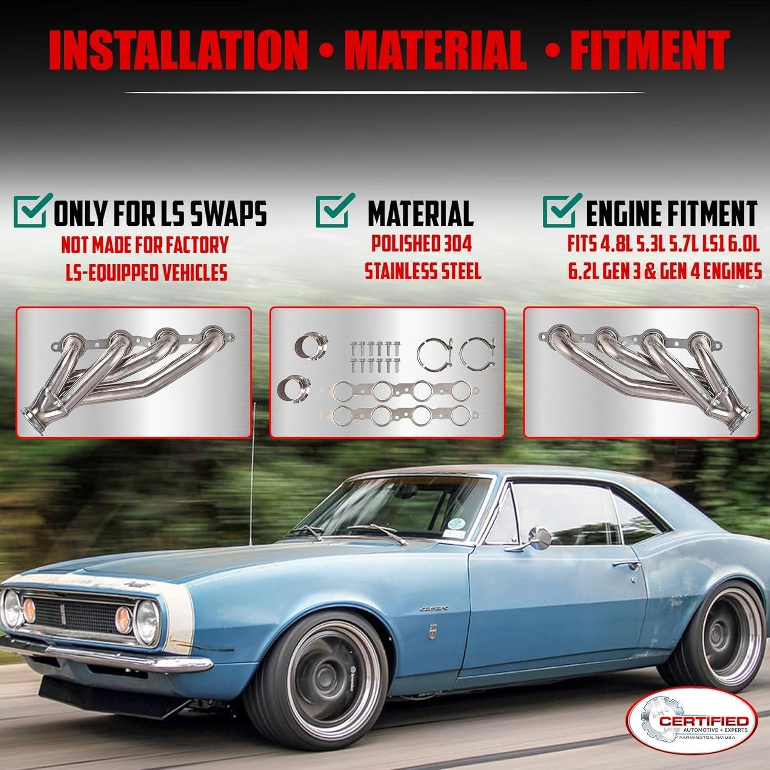 Upgrade your LS swap project with stainless shorty headers engineered for precision fit and reliable power. Built for Gen 3 and Gen 4 LS engines, 4.8L, 5.3L, 5.7L LS1, 6.0L, 6.2L; these headers fit custom swaps only and will not work on vehicles that came from the factory with LS engines.