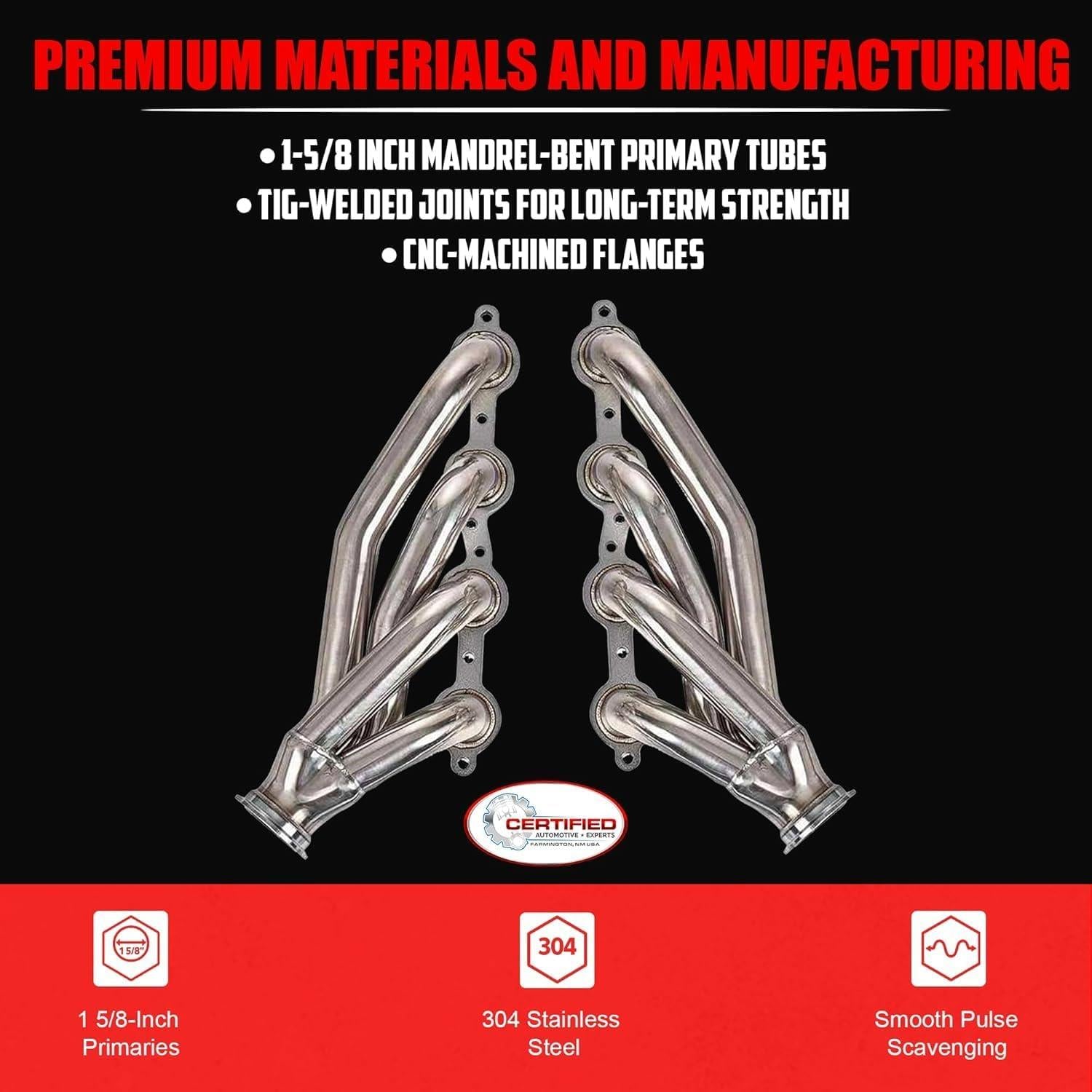 V-Band Style LS Swap Shorty Headers Stainless Steel Exhaust Headers with Upgraded Factory Style MLS Gaskets and Header Bolts Fits 4.8L 5.3L 5.7L LS1 6.0L 6.2L Gen 3 and Gen 4 Engines For LS Swaps Only