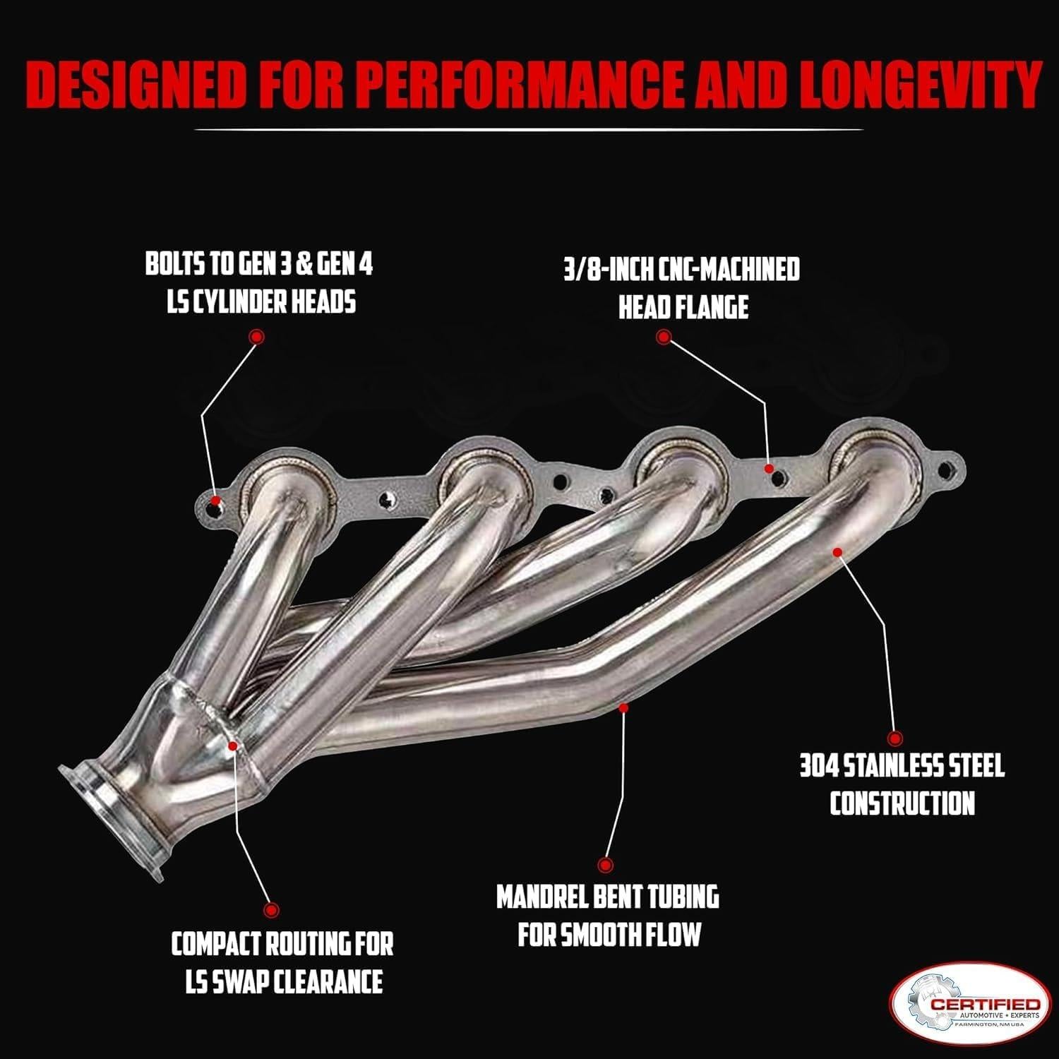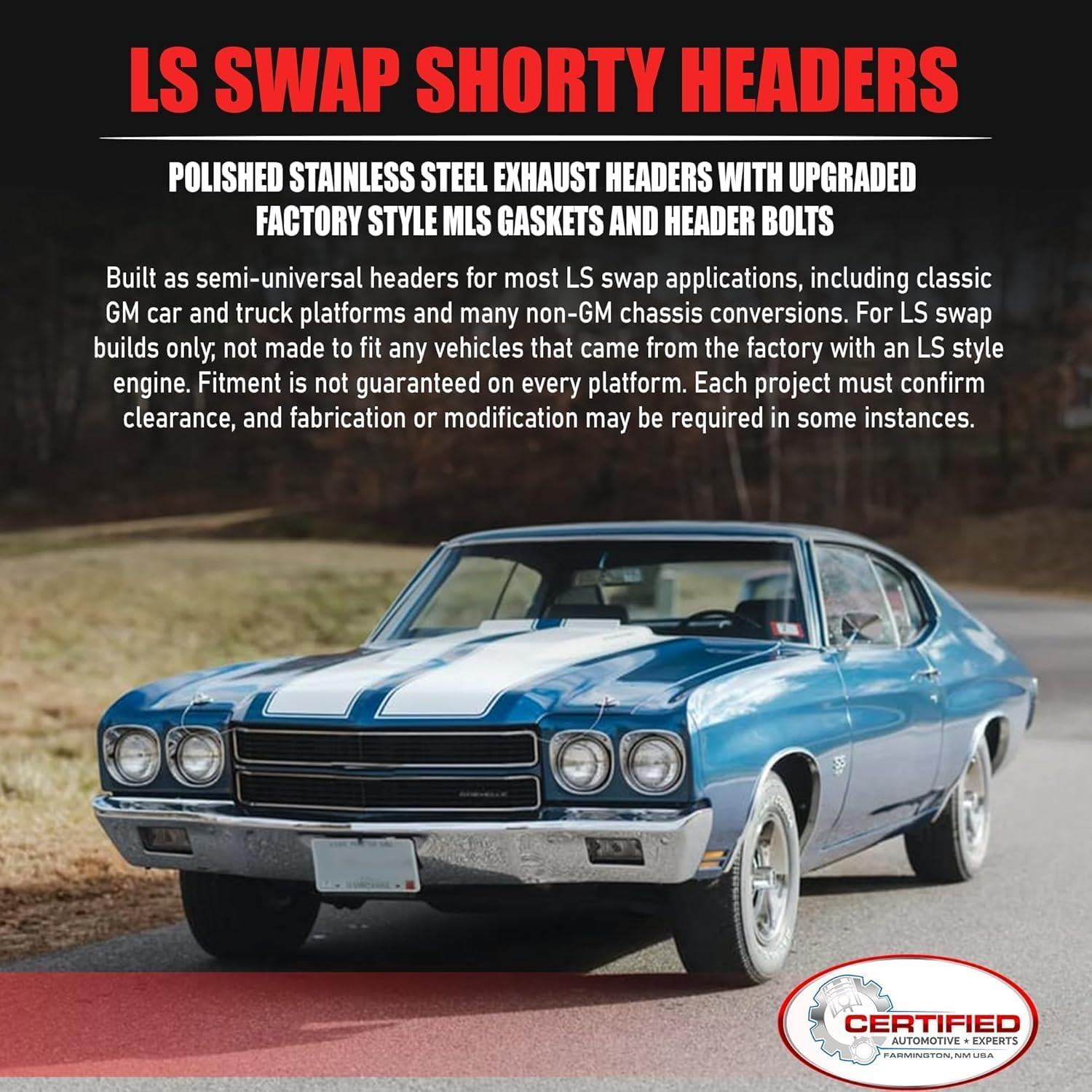 Upgrade your LS swap project with stainless shorty headers engineered for precision fit and reliable power. Built for Gen 3 and Gen 4 LS engines, 4.8L, 5.3L, 5.7L LS1, 6.0L, 6.2L; these headers fit custom swaps only and will not work on vehicles that came from the factory with LS...