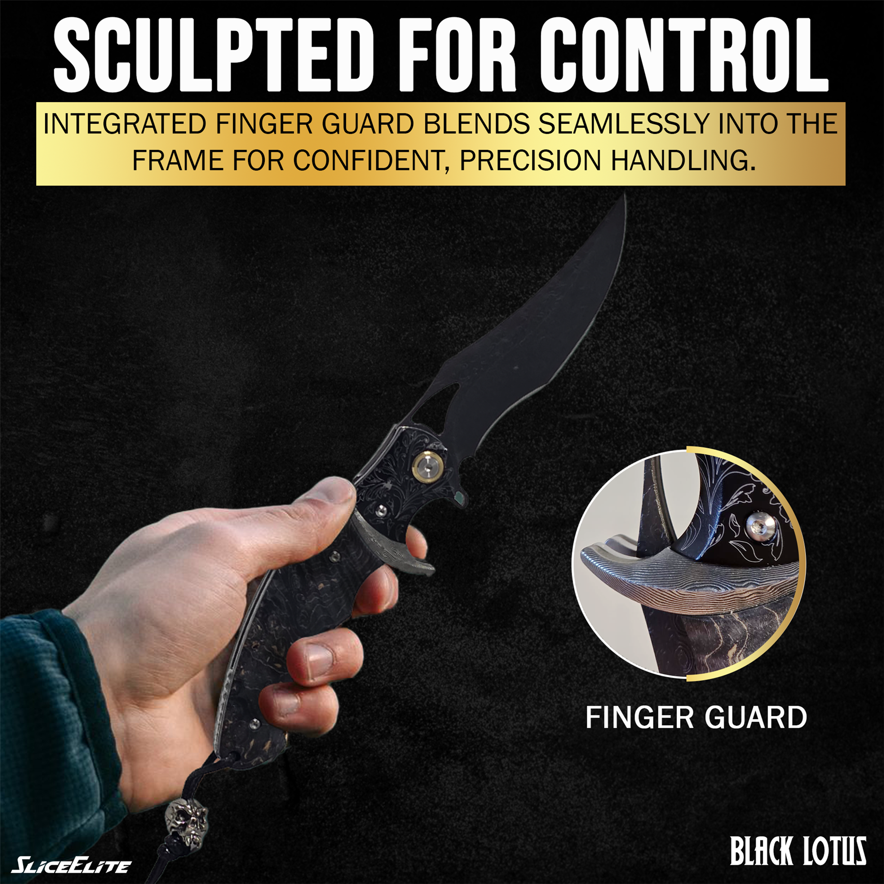 The Black Lotus folding knife by SliceElite features a VG10 core blade with 89 layers of Damascus steel, offering fine cutting ability with an eye-catching pattern. It’s designed for everyday carry use by those who appreciate craftsmanship and compact utility.