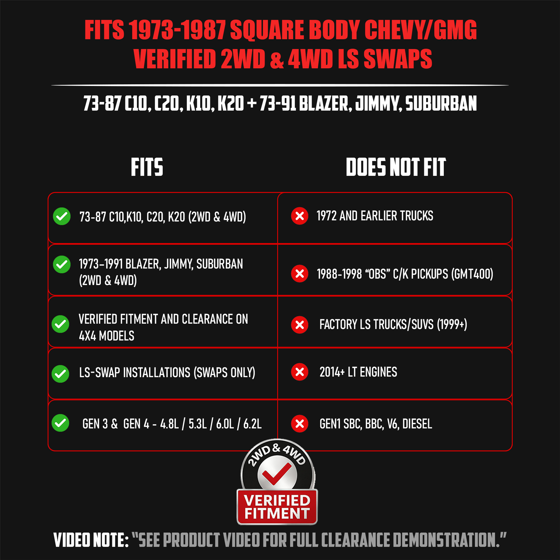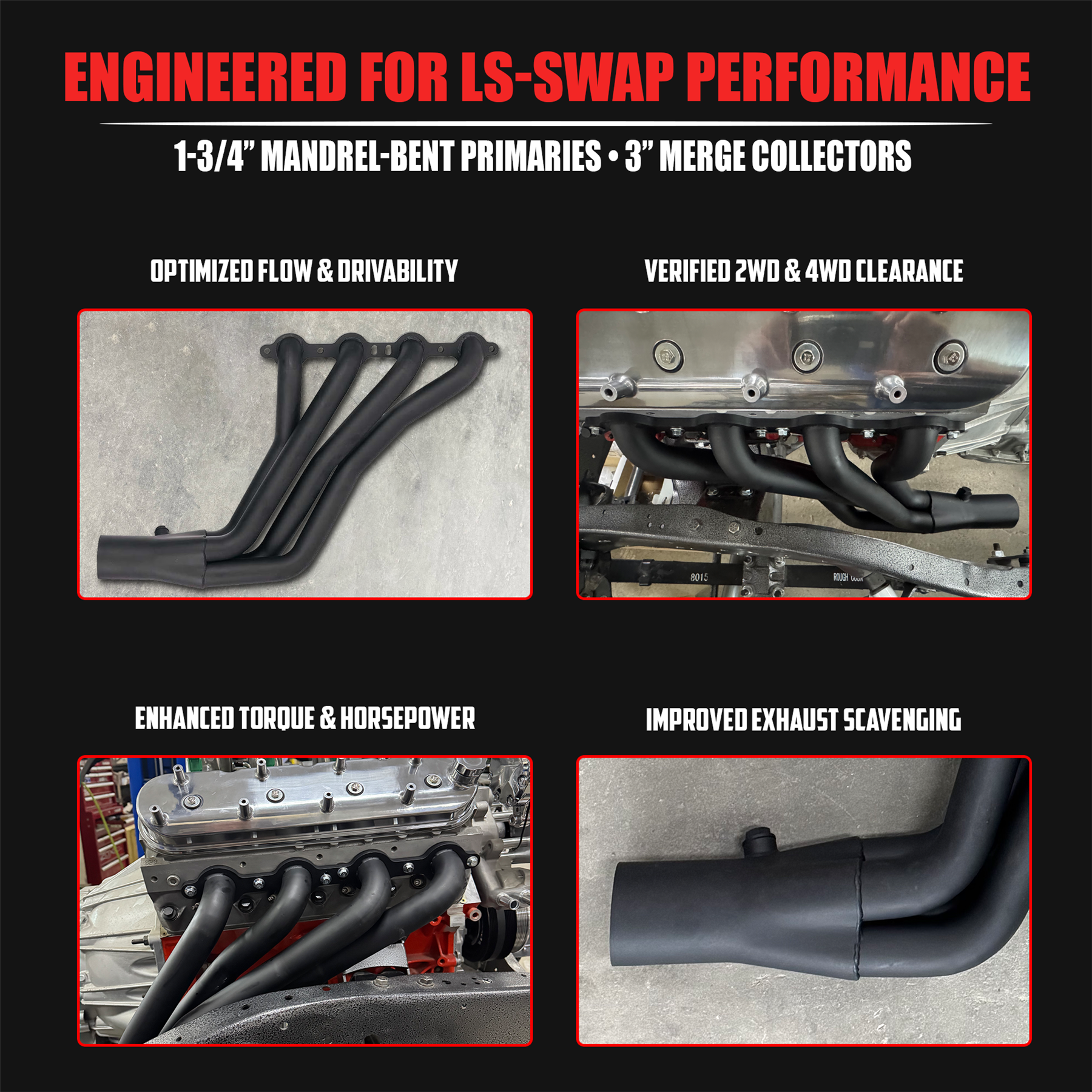 Long Tube Headers for LS Swaps Black Aluminized Thermal Barrier Coating with MLS Gaskets & Header Bolts Fits 73–87 Chevy GMC C10 K10 and 88–91 Square-Body Blazer Jimmy Suburban (Not OBS)