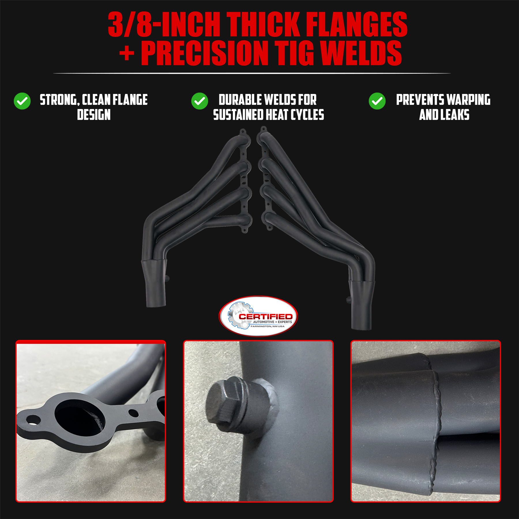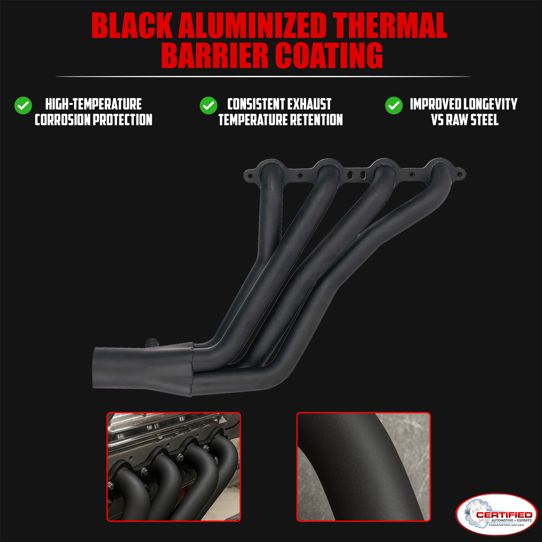 Long Tube Headers for LS Swaps Black Aluminized Thermal Barrier Coatin