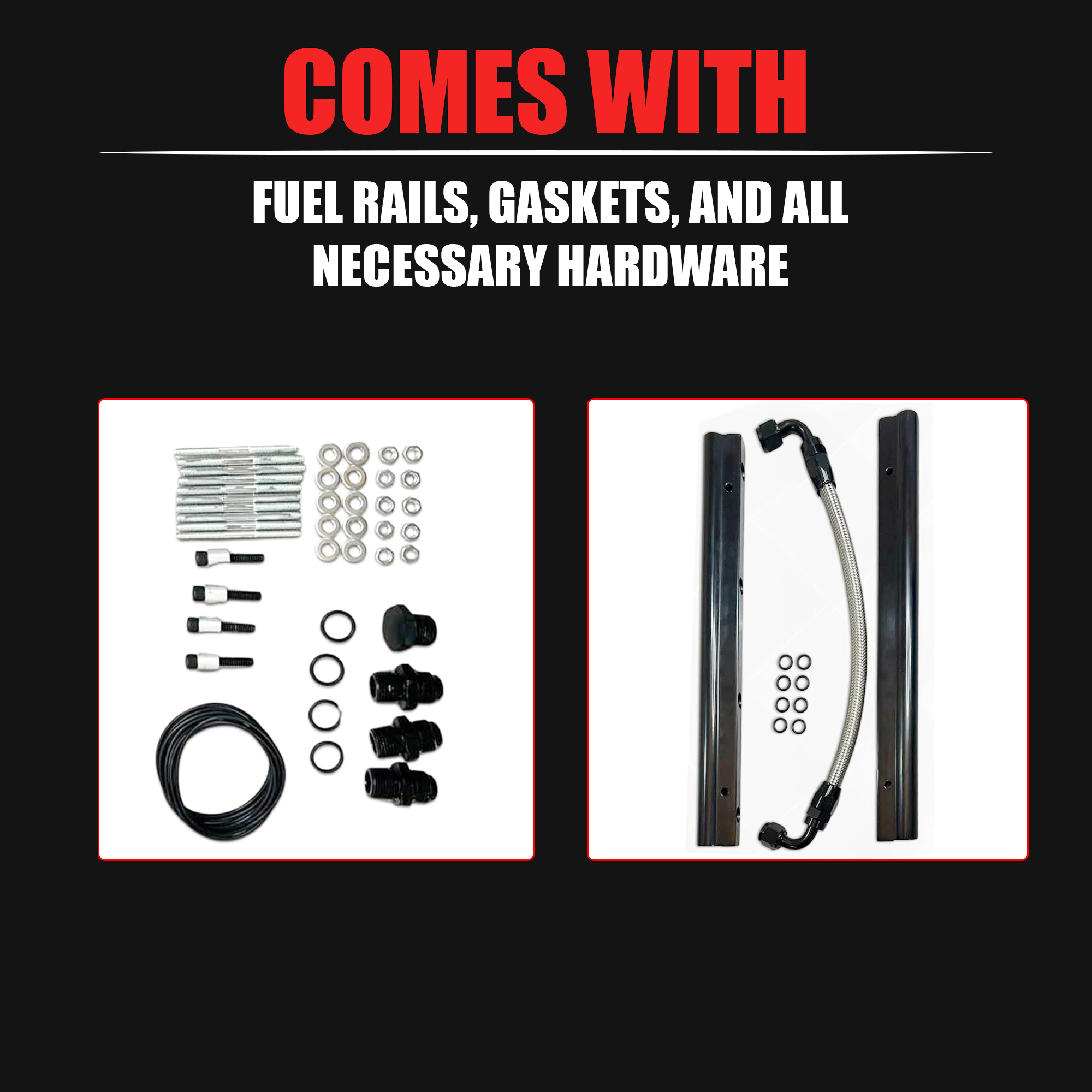 • Easy Installation: The comprehensive kit includes everything needed for a straightforward setup, from fuel rails to gaskets and mounting hardware.