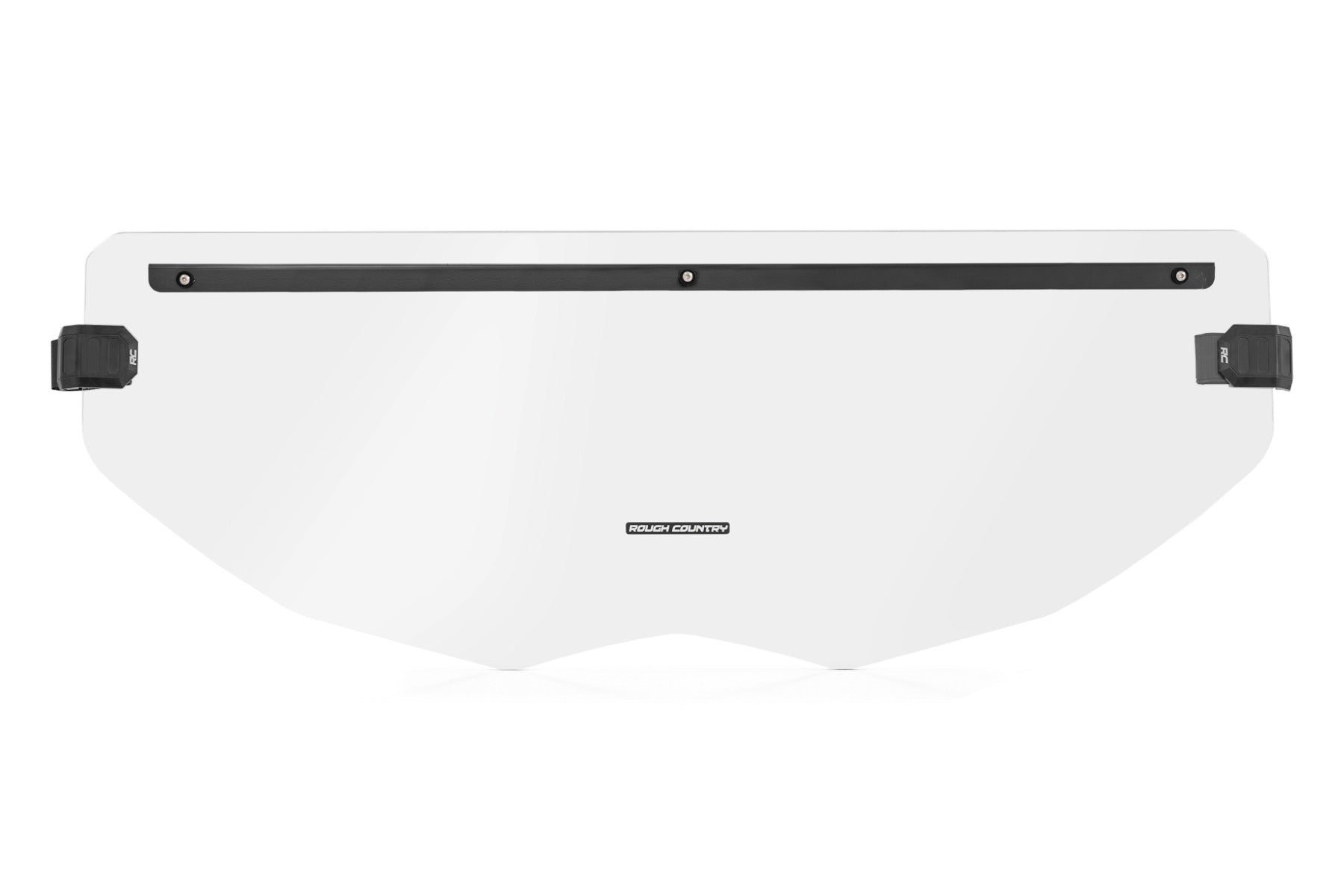 High-Quality Polycarbonate Construction. Rough Country UTV windshields are constructed from thick polycarbonate material that is precision cut for a perfect fit.  The polycarbonate material provides an ideal combination of clarity, flexibility, durability that outperforms glass, acrylic, and other windshield materials. \