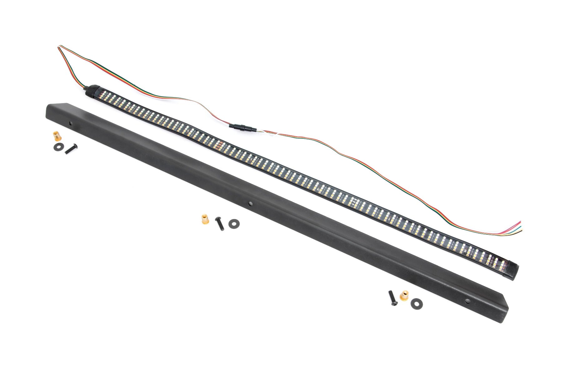 Take your Can-Am's functionality to new levels with Rough CountryΓÇÖs Quad-Row Multifunction LED Tailgate Light Strip. This LED Light Strip has multiple modes, with a series of red and white LEDΓÇÖs all tied into the same strip. This tailgate upgrade offers bright and dim red light options, white reverse lights, and half-panel red turn signals.\
