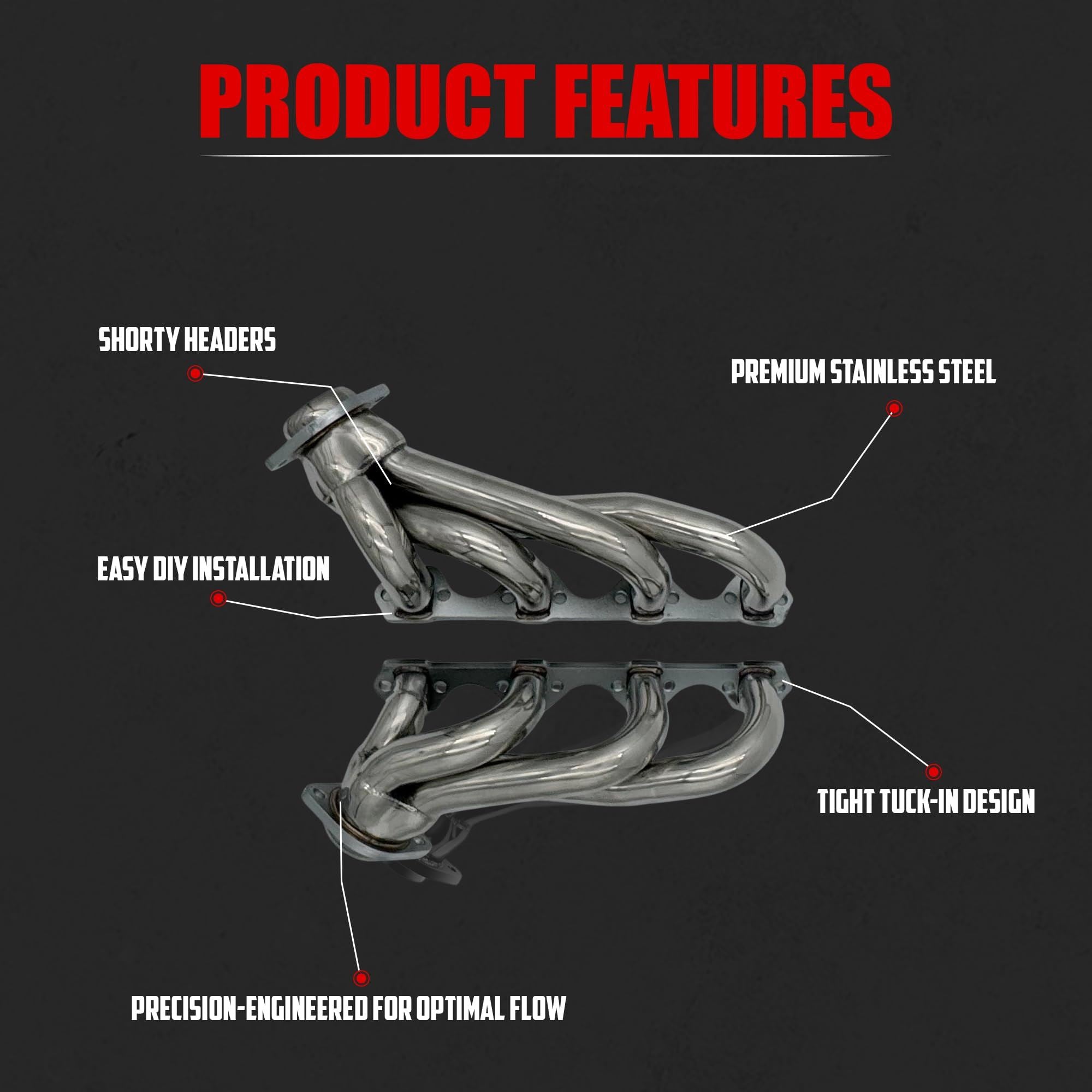 Transform your 1979-1993 Ford Mustang with our high-performance stainless steel shorty headers. Engineered for the 5.0L V8 (302 ci engines), these direct fit bolt-on replacement headers are designed to deliver exceptional horsepower, torque, and overall performance. With a polished surface, our headers offer superior resistance against rust, ensuring durability and long-lasting performance. Enhance your Mustang’s performance and style with our top-of-the-line stainless steel headers. Designed for enthusiasts who demand the best, these headers offer a perfect blend of power, durability, and aesthetics. Upgrade today and experience the difference!