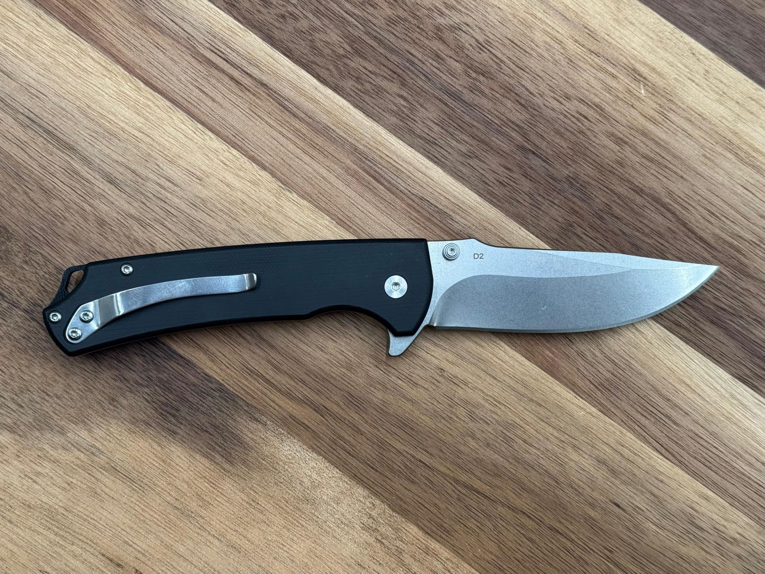 Paying tribute to the legendary New Mexico outlaw Doc Scurlock, this SliceElite folding knife blends historical inspiration with modern design. The 3.39-inch D2 steel blade ensures exceptional cutting performance, edge retention, and reliability in demanding tasks. Paired with a sleek black G10 handle, the Doc Scurlock provides a lightweight, durable, and secure grip for tactical and everyday carry. The button lock mechanism offers smooth, secure operation, while the stone wash finish lends a rugged yet refined aesthetic. Compact, lightweight, and battle-tested for adventure, this knife is as versatile as its namesake.